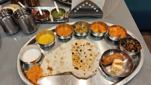 We specialize in authentic vegetarian thalis, featuring North Indian, Gujarati, and Rajasthani dishes.